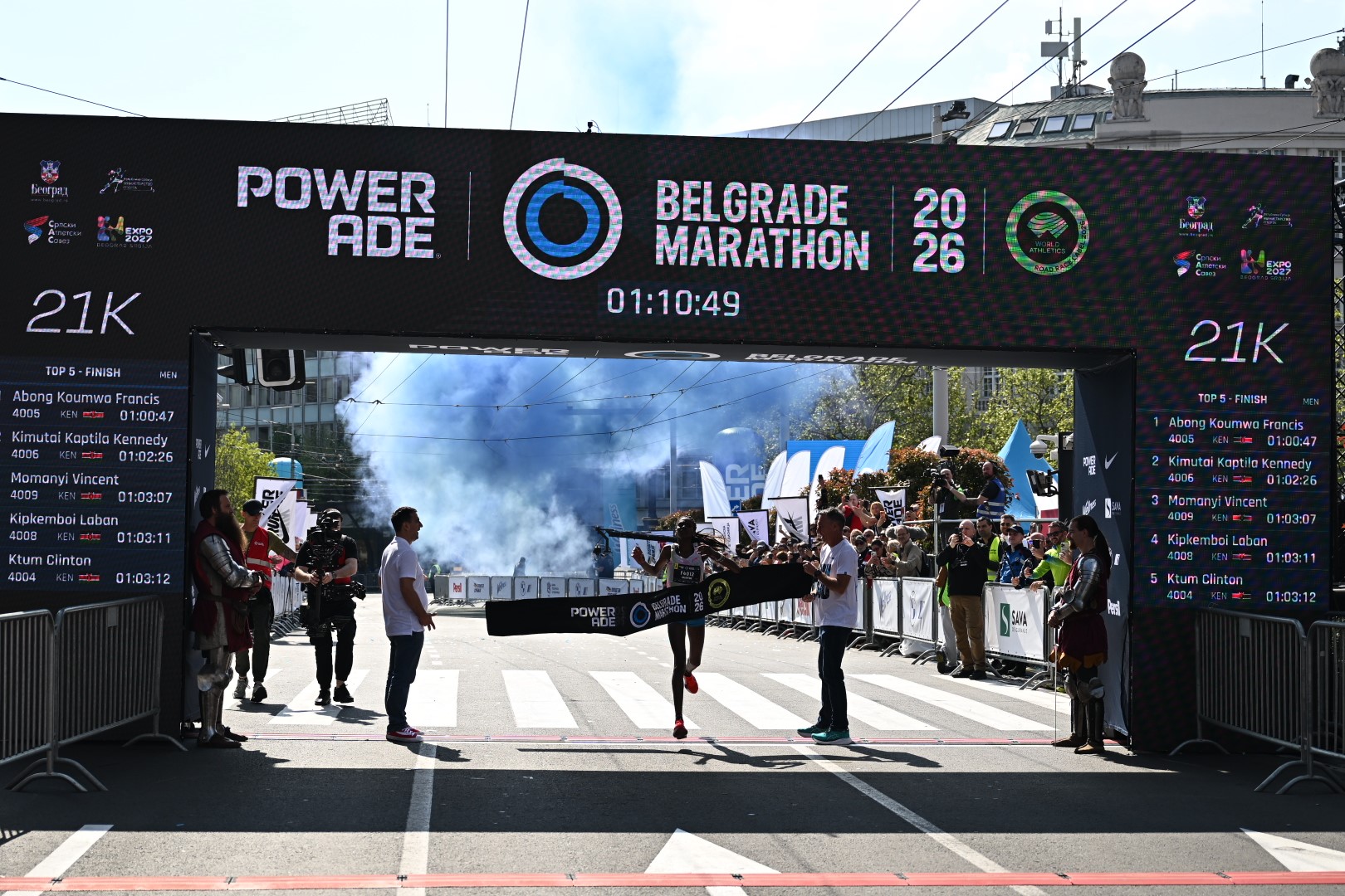 Kenijci Frensis Abong Kumva i Valentina Džebet pobednici su i novi rekorderi polumaratonske trke održane u okviru 39. Powerade Beogradskog maratona.