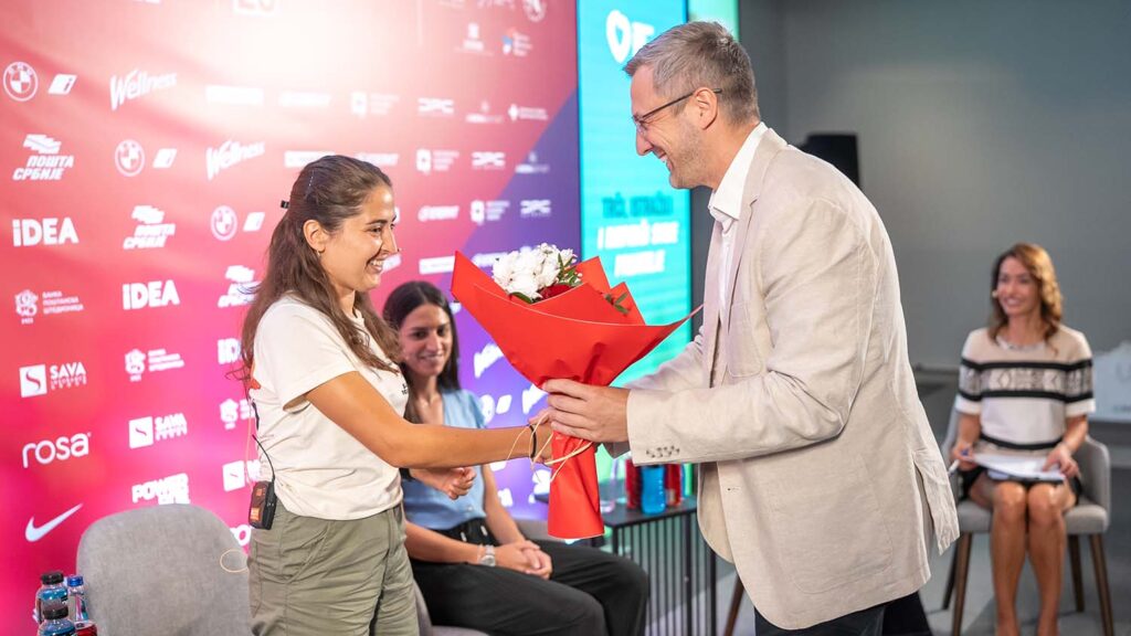Stručni saradnik SSOSIB-a Dejana Bošnjaković i učesnica trka Beogradskog maratona sa invaliditetom, Zoja Milinković, prenele su publici svoje iskustvo sa terana i podsetile na dobre prakse inkluzivnih sportskih događaja.